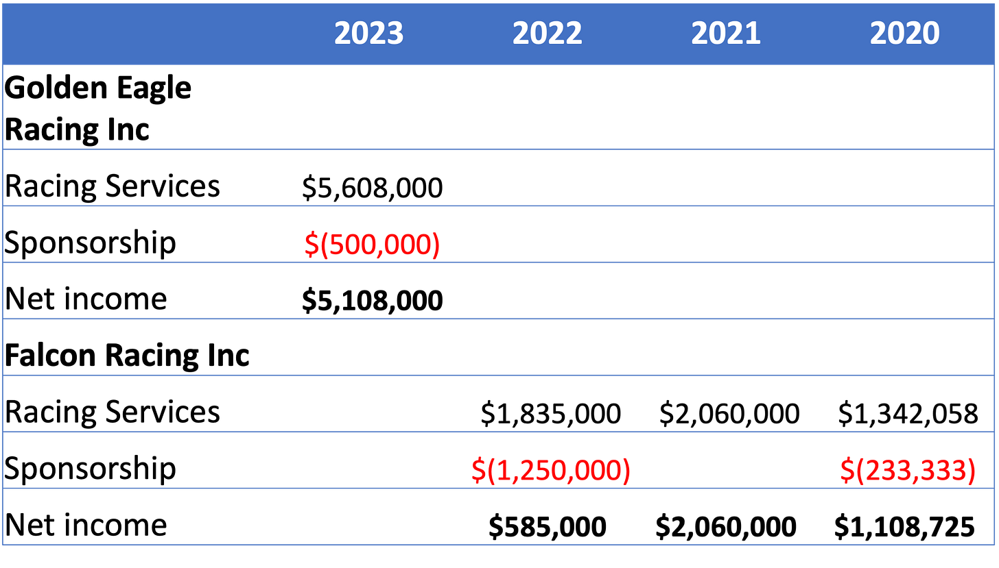 Mercedes Group sold 33.3% of its Grand Prix team to INEOS Industries Holdings Limited which disclosed, “In 2022 the Company purchased one third of the share capital of Mercedes-Benz Grand Prix Limited for consideration of €248.2 million.” That valuation looks like a bargain in comparison to the Forbes valuation of $3.8 billion. INEOS Racing sponsored the F1 team to the tune of £50 million in 2023 which presumably was agreed in parallel with the negotiation of the equity deal.