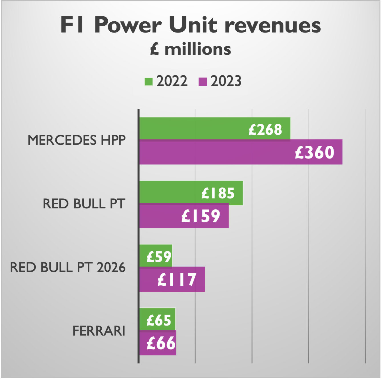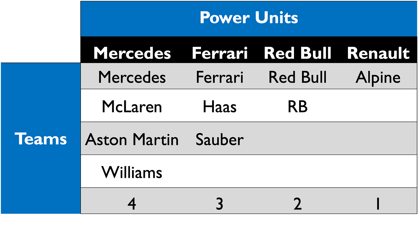 The Mercedes powertrain business is the largest which is not surprising given it supplies 4 teams in total. This business remains 100% owned by Mercedes Group. It has additional revenues not related to F1 - in 2023 it began a production run of 275 AMG One road car Power Units. It also assists Mercedes with its R&D activities, including electric vehicles.